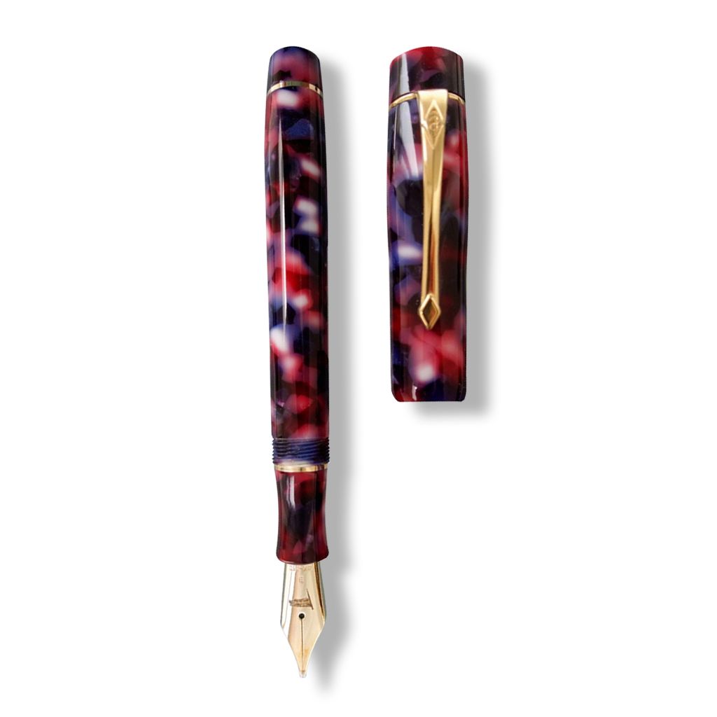 Presentamos la pluma estilográfica Conway Stewart Wellington Nebula de edición limitada, una pluma que cuenta con una sutil forma curvilínea que la diferencia de los diseños de plumas tradicionales. Con un torbellino de azules, rojos y morados intercalados con toques de blanco nacarado, no hay dos bolígrafos iguales. Diseñado con un plumín Flag de oro de 18 quilates fino, mediano o ancho y alojado en una caja de presentación de cuero negro Conway Stewart, este bolígrafo es el complemento perfecto para cualquier colección. ¡Con solo 20 disponibles, asegúrese de actuar rápidamente antes de que se agoten!