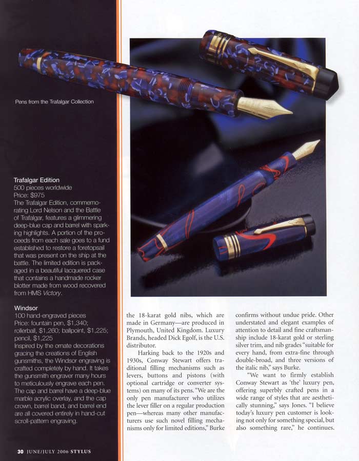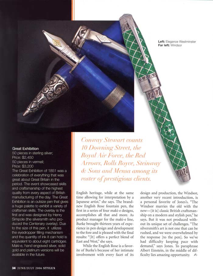 "Queremos establecer firmemente a Conway Stewart como 'la' pluma de lujo, ofreciendo plumas magníficamente elaboradas en una amplia gama de estilos que son estéticamente impresionantes", dice Jones. "Creo que el cliente actual de bolígrafos de lujo no sólo busca algo especial, sino también algo raro", continúa.