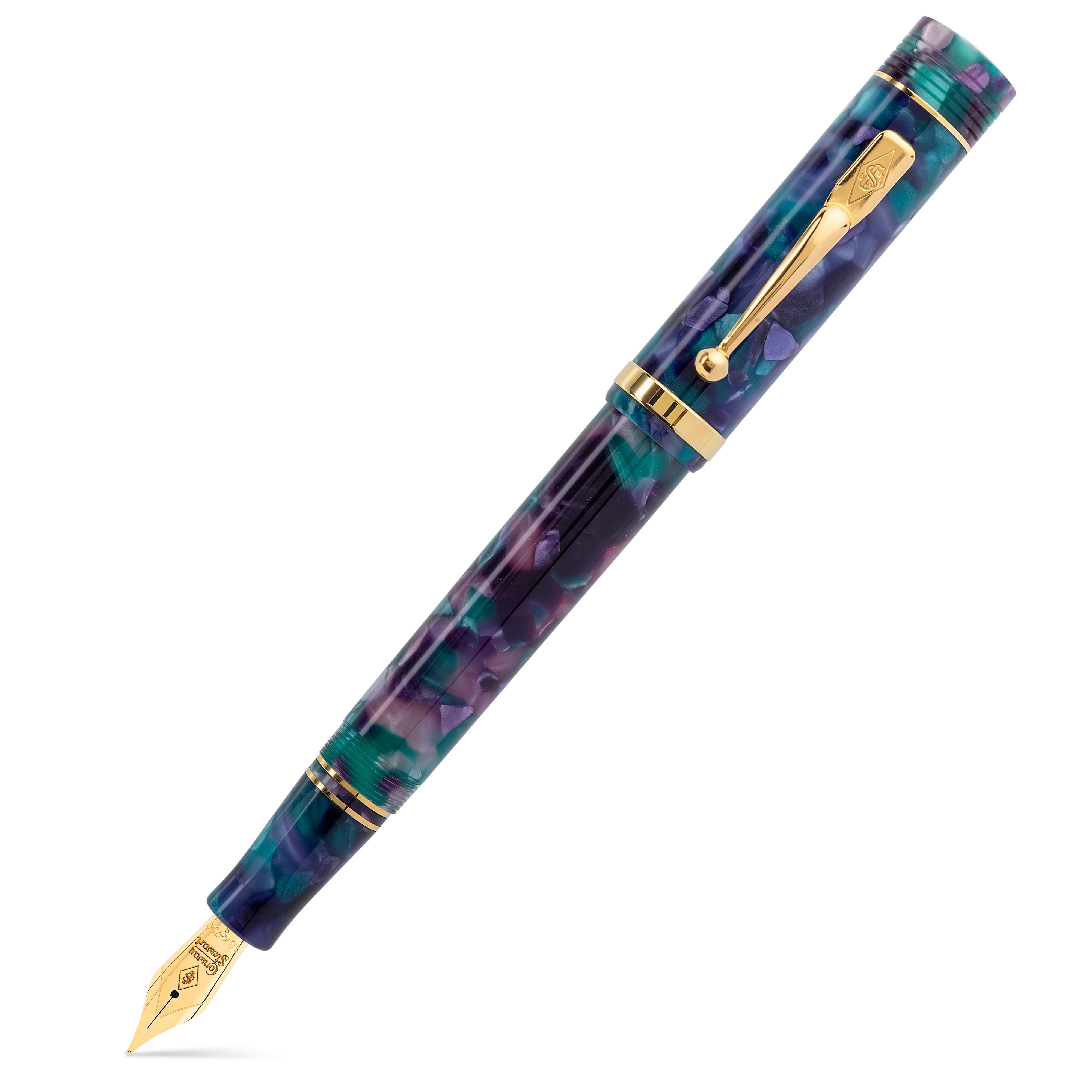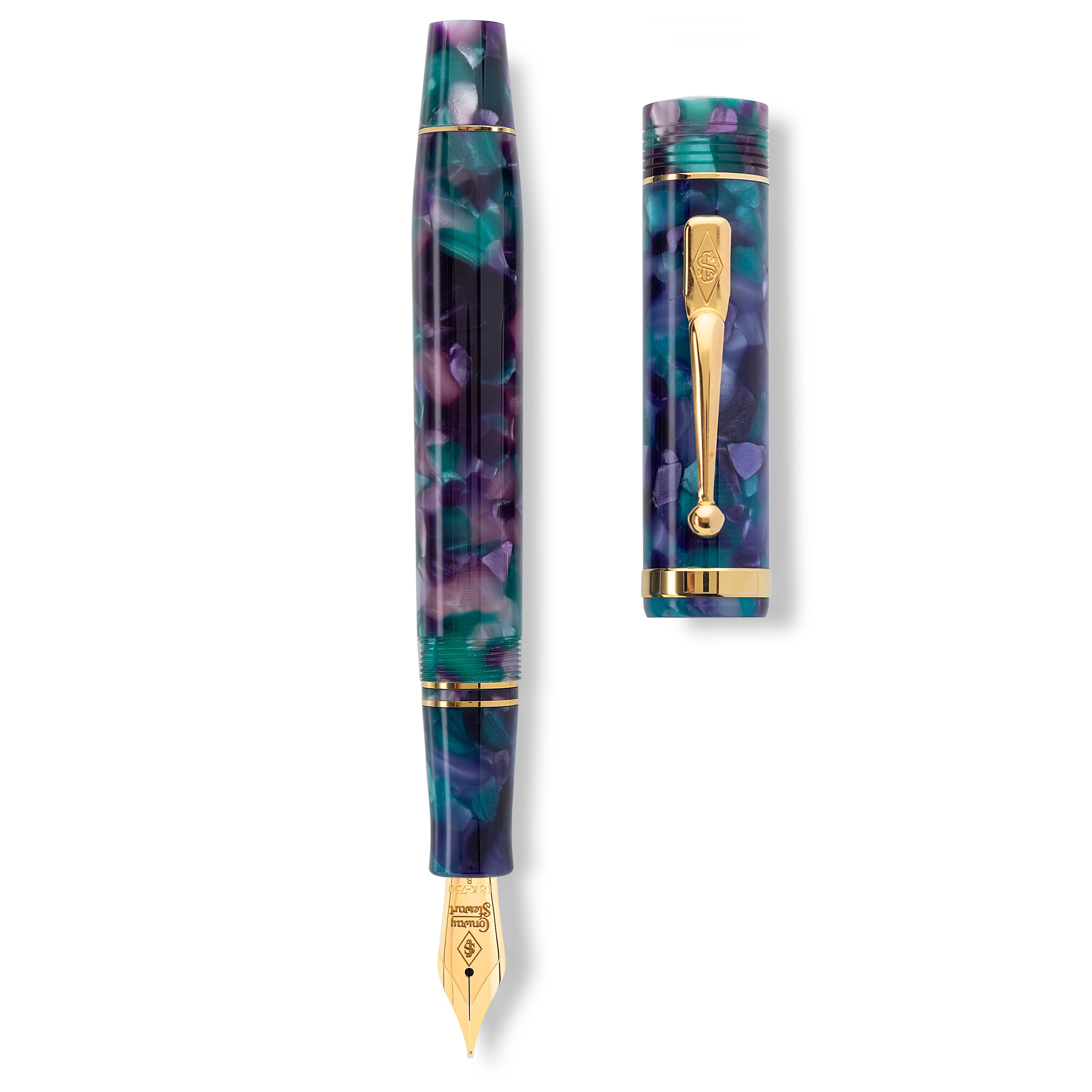 El Conway Stewart Churchill Azure es un bolígrafo de edición limitada con solo 15 disponibles. La combinación de acrílico Azure de púrpura y azul mediterráneo con tonos más claros y más oscuros se complementa con accesorios de oro sólido o plata esterlina. Inspirado en el Gran Estadista Británico, este bolígrafo de tamaño impresionante es el bolígrafo insignia de Conway Stewart. Cada pluma estilográfica viene con una caja de presentación de cuero sintético negro original de Conway Stewart, un certificado de autenticidad, una guía del usuario y un paño de pulido antideslustre para mantener su pluma en condiciones brillantes. Consiga este exclusivo y elegante bolígrafo mientras aún esté disponible.