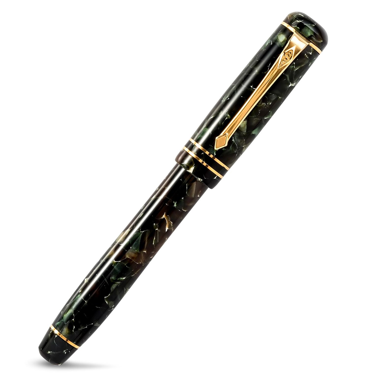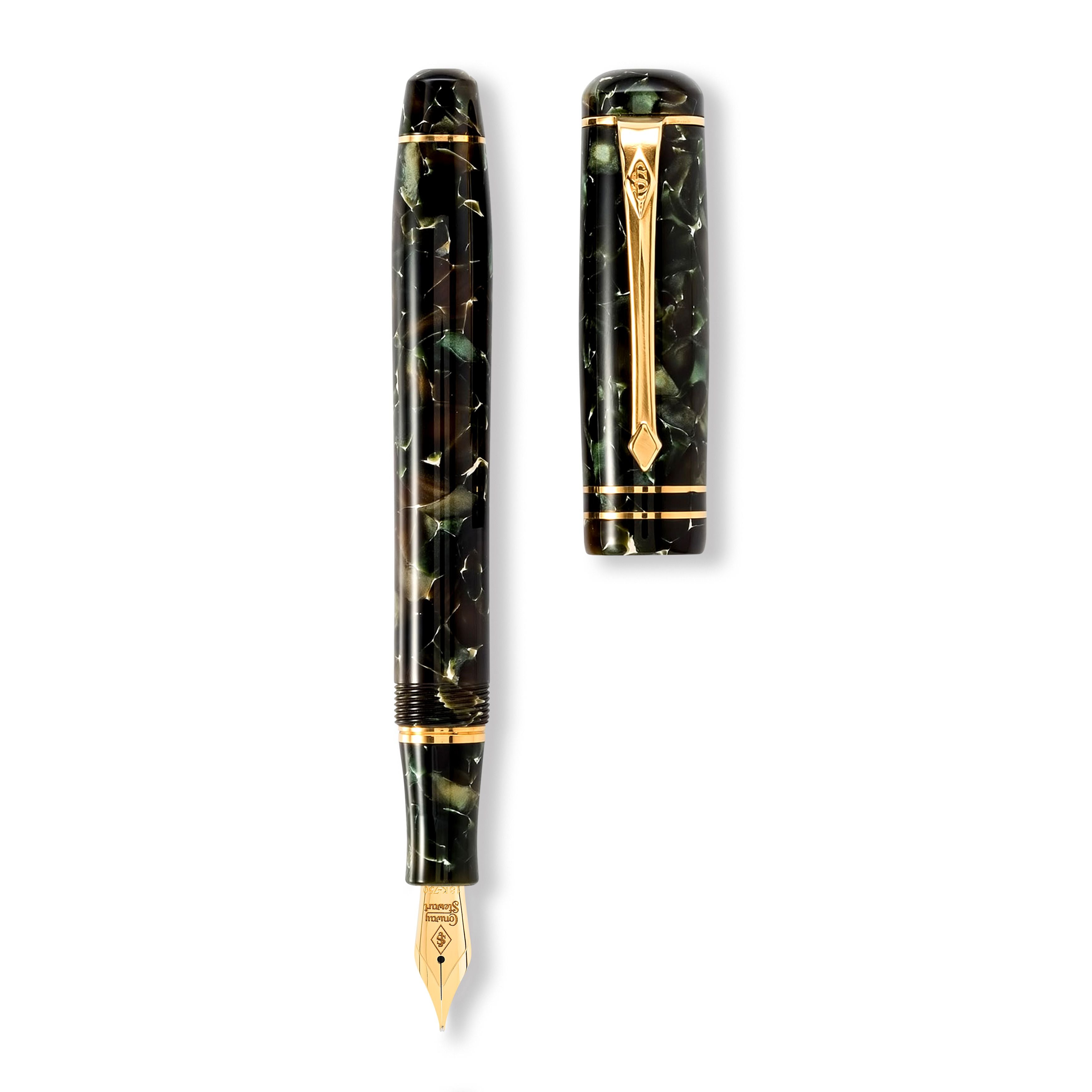 コンウェイ・スチュワートの 2013 年モンタギューとキャピュレット シリーズは、シェイクスピアの永遠の古典『ロミオとジュリエット』の主要登場人物を称え、優雅でエレガントなスリムなデザインを手に命を吹き込みます。 オリジナルのスターリングシルバーのバベッジ モデルをベースにしたこれらのペンは、キャップ、バレル、グリップ部分にハンドキャストされたアクリル樹脂の構造を特徴としています。キャピュレットには、カーディナル レッド、カッパー ブロンズ、エバーグリーン、ラベンダー、シー グリーンの 5 つの新しい鮮やかな仕上げがあり、モンタギューは、優雅なギョーシェ スタイルの彫刻が施された輝くクラシック ブラックで作られています。 これらのペンは、コンウェイ・スチュワート コレクションを日常の実用性の新たなレベルに引き上げ続けており、そのスリムなラインと完璧にバランスのとれた軽さにより、今日の忙しいライフスタイルに見事にフィットします。 システム手帳やブリーフケースとして実用的です。モンタギューとキャピュレットは、あらゆるエグゼクティブや高級筆記具の愛好家にとって完璧なアクセサリーです。 手になじみやすいデザインでありながら、機能性とエレガントさを兼ね備えた新シリーズです。万年筆バージョンには、エクストラ ファインからエクストラ ブロード、イタリック ファイン、イタリック ミディアム、イタリック ブロードまで 8 つのペン先グレードからお選びいただける大型の 18 カラット ソリッド ゴールド ペン先が取り付けられており、信頼性が高く使いやすいカートリッジ コンバーター...