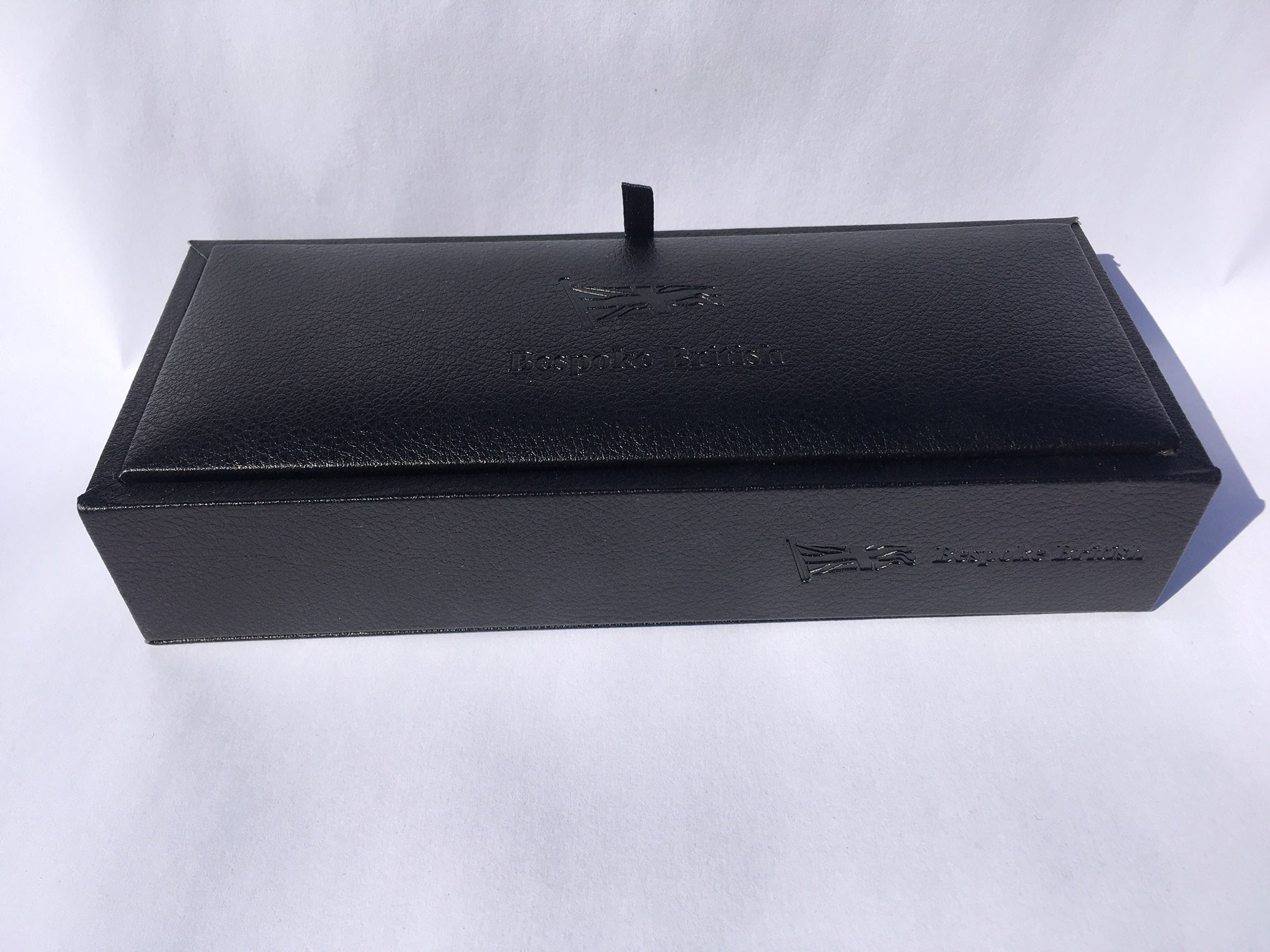 Beautifully presented in a black vegan leather Bespoke British Pen box that doubles as a desk tray.