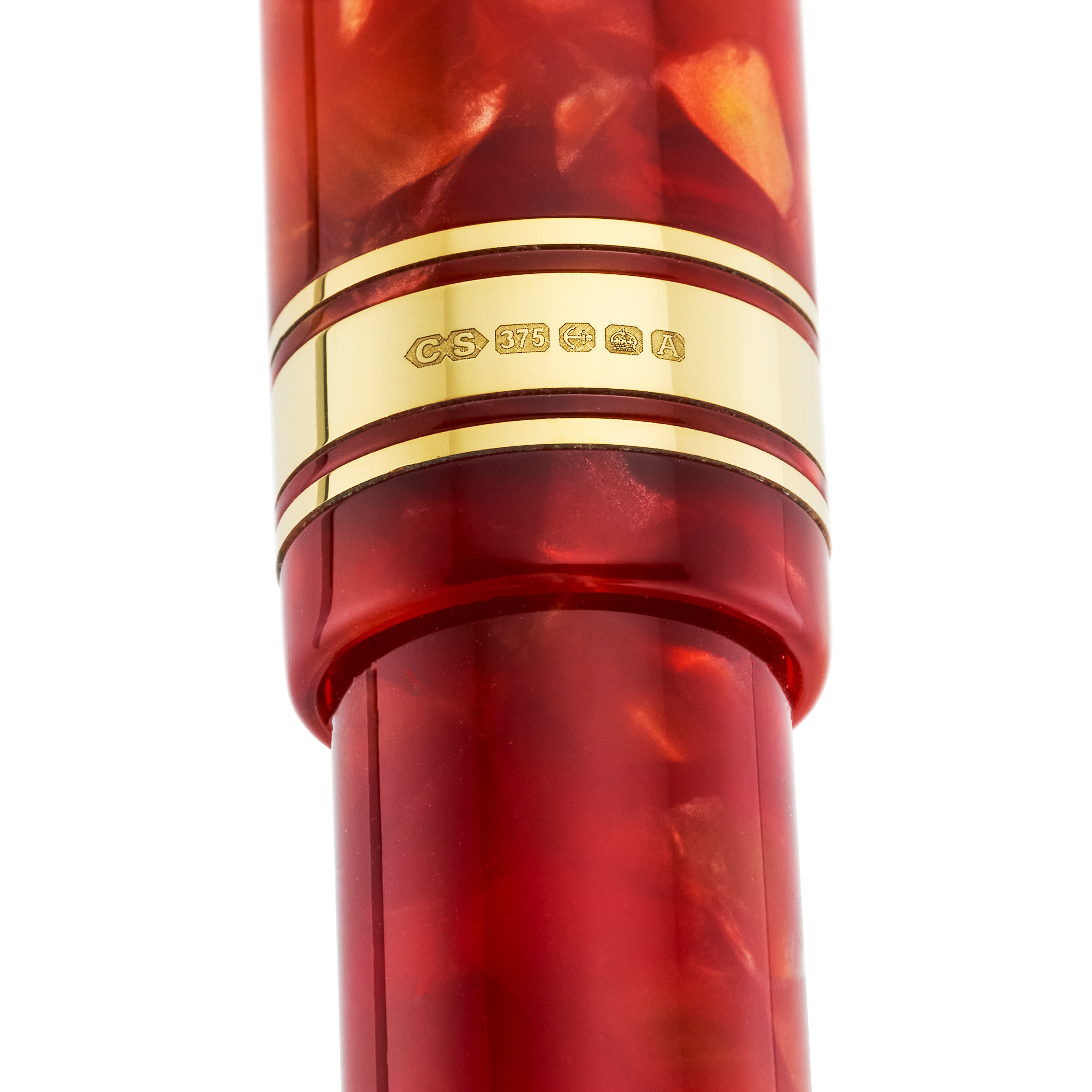 Today the Series 100  is considered a mid-sized pen, but at its launch it was a large pen!   The beautiful finish and flawless perfection of these handmade pens are part of Conway Stewart’s proud heritage. Each pen is decorated with the triple gold cap bands (2 narrow and 1 wide) that have traditionally been used on the Series 100 ‘Specials’. The central broad ban is stamped with English hallmarks to confirm the purity of the gold.