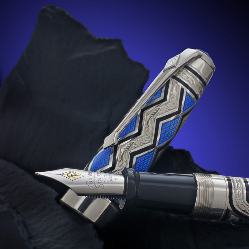 “2014年钢笔世界读者选择奖提名 — 最佳文化或历史主题” 在 20 年代的经典时代,一支精美的钢笔不仅被认为是奢侈品,而且是日常必需品。这些钢笔中最好、最独特的钢笔通常饰有贵金属覆盖层、华丽的金银丝、雕刻,甚至钻石。它们是奢华身份的象征,即使在一个充满炫耀财富和颓废的时代也引人注目。全新康威·斯图尔特·盖茨比 (Conway Stewart Gatsby) 汲取这一时代的灵感,为我们的珐琅限量版系列带来戏剧性的新面貌。 我们的设计目标是重现装饰艺术时代的风格感和熙熙攘攘的活力。从钢笔黄金时代的老式钢笔中汲取历史悠久的平顶形状开始,我们精心设计了一种形状和尺寸,可以在最广泛的手部尺寸范围内保持平衡。 Gatsby 采用复杂的联锁设计,在笔帽和笔杆上形成线条、矩形和正方形,是 1920 年代首次出现的大胆新风格的经典体现。笔帽和笔杆均选用经过霍尔标记的实心纯银,经过抛光处理,呈现出闪闪发光的光泽,与手工珐琅作品所选择的深红色和黄色相呼应。结果是大胆、时尚,每次使用时一定会引起评论! 几个世纪以来,用珐琅装饰贵金属的艺术一直是深受欧洲人喜爱的传统。事实证明,它是将 Gatsby 上精致的雕刻设计带入充满活力的生活的完美选择。丰富的亮红色点缀在覆盖笔帽和笔杆的鲜艳黄色背景中闪闪发光。透过半透明的珐琅,清晰的雕刻装饰设计变得栩栩如生,笔盖或笔杆在光线下的每一个动作都展现出这一令人惊叹的设计的新面貌。 Conway Stewart 以其与英国最好的工艺的合作关系而自豪。我们贵金属珐琅系列的艺术家以其在珠宝、饰牌和奖杯方面的创造力和设计而闻名。罗伯特·格洛弗 (Robert Glover) RCA 文学硕士,已出版众多行业书籍,并获得了许多著名奖项和演讲。他的作品包括主要电视奖项、英国音乐界著名且标志性的全英音乐奖奖杯、独家企业和军事演示。格洛弗之前的委托作品包括为现代造船公司董事长摩纳哥格蕾丝王妃殿下制作的展示品、丘纳德航运公司旗舰 QE2 以及为皇室制作的银器以及为伞兵团和近卫旅制作的军团银器。 我们的钢笔是在英国手工制作的,仅使用最好的材料。我们的一款精美书写工具的制作涉及超过 233 个单独的步骤。我们的工匠以对细节的一丝不苟的关注而自豪,从实心纯银棒的选择、手工珐琅的应用,到每件书写工具的最终手工抛光。我们所有的贵金属书写工具均刻有英国标志,即 0.925 纯银或...