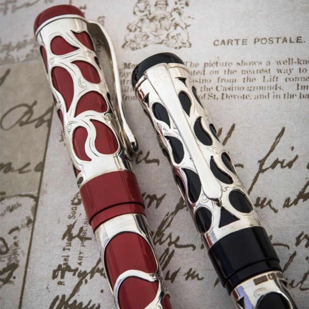 Conway Stewart 2013 年 Montague and Capulet 系列致敬莎士比亚永恒经典《罗密欧与朱丽叶》中的主要人物,将优雅纤薄的设计带入手中。 这些笔以原始的纯银巴贝奇模型为基础,笔帽、笔杆和握持部分采用手工铸造的丙烯酸树脂结构。 Capulet 有五种全新的充满活力的饰面可供选择:红衣主教红、铜青铜色、常青色、薰衣草色和海绿,而 Montague 则采用闪闪发光的经典黑色制成,饰有优雅的扭索状雕刻风格。 这些钢笔继续将 Conway Stewart 系列的日常实用性提升到一个新的水平,其纤细的线条和完美平衡的轻盈重量,非常适合当今忙碌的生活方式。 Montague 和 Capulet 非常适合用于日常计划表或公文包,是每位高管和高级书写工具爱好者的完美配件。 在保持手感舒适的同时,这个新系列的设计兼具功能性和优雅性。钢笔版本配备了我们的 18 克拉大号纯金笔尖,有八种笔尖等级可供选择,从超细到超宽、细斜体、中斜体、宽斜体,并采用可靠、易于使用的墨盒转换器系统。 Montague 和 Capulet II 还提供滚珠笔形式,适合那些既喜欢易用性又不想放弃液体墨水在纸张上优雅流动的用户。 Montague...