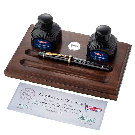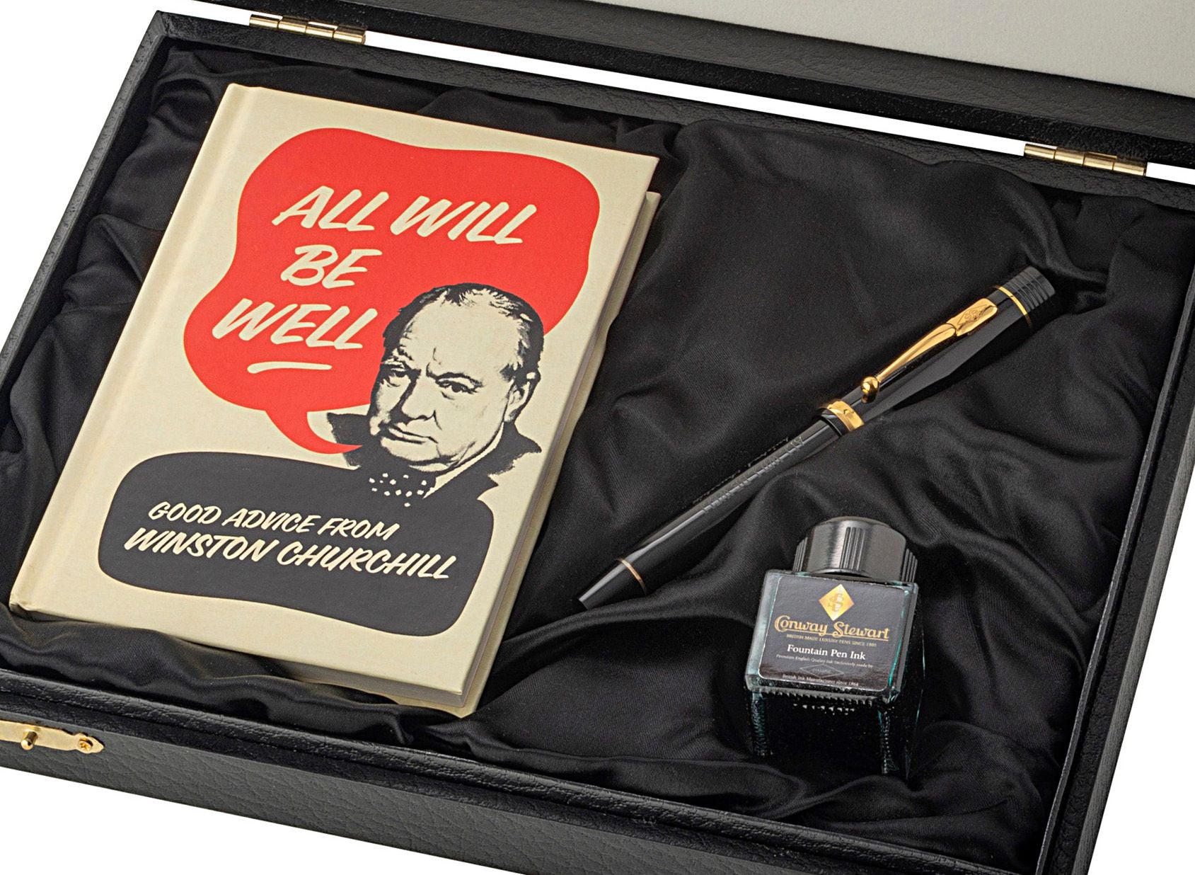 康威·斯图尔特 (Conway Stewart) 只向我们收藏家俱乐部的会员提供庆祝钢笔,并附有新书《Fountain Pens for the Million — Conway Stewart 1905–2005》的精装本,由作者斯蒂芬·赫尔 (Stephen Hull) 亲自签名。 收藏家俱乐部钢笔和书籍礼品套装每种型号限量 50 件,并且该书将具有与钢笔相匹配的限量版编号。 康威·斯图尔特 (Conway Stewart) 很高兴地宣布推出庆祝限量版系列的前两款特殊钢笔。庆典系列是利用我们两种最受欢迎的现代钢笔设计 ——丘吉尔和惠灵顿的平台推出的。该型号以温斯顿·丘吉尔爵士命名,是康威·斯图尔特长期以来的旗舰设计。 丘吉尔笔在手感和外观上雄伟而永恒,一直是那些喜欢庄重、超大书写工具的人的最爱。 Celebration Churchill 是我们旗舰型号的绝佳典范,采用闪闪发光的黑色树脂制成,其雕刻图案的灵感源自 Conway Stewart 在 1920 年代推向市场的早期硬橡胶钢笔。这种波浪图案贯穿笔盖和笔杆的整个长度,笔盖顶部和笔杆末端经过光滑抛光以突出设计。 Churchill...